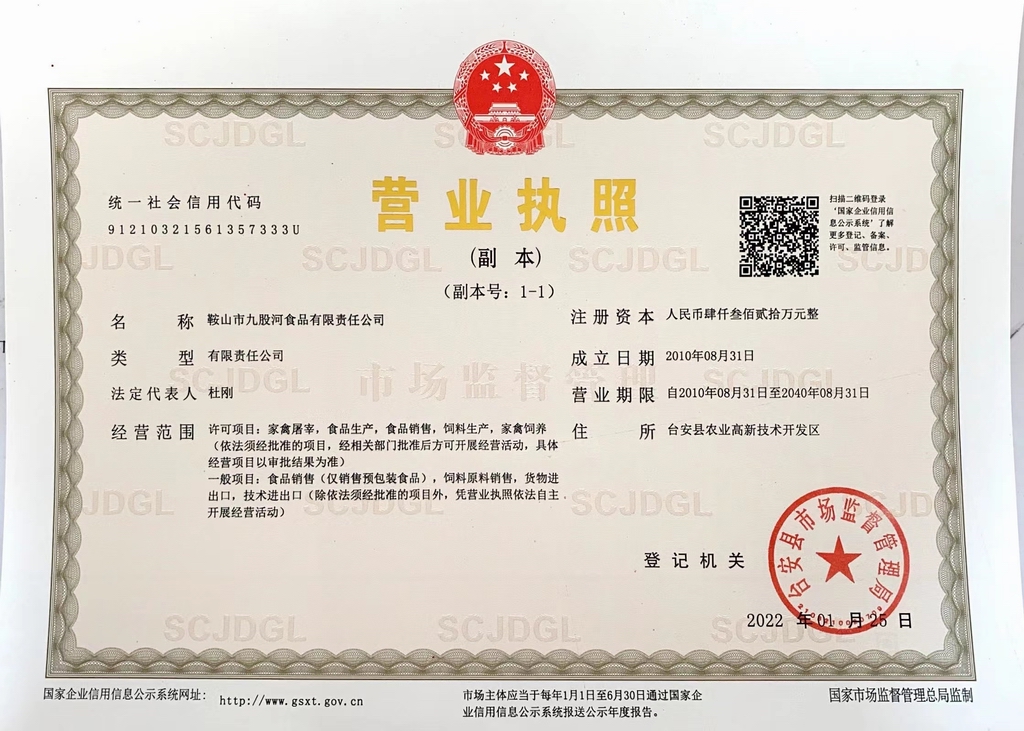 ![鞍山市九股河食品有限責(zé)任公司]() 鞍山市九股河食品有限責(zé)任公司